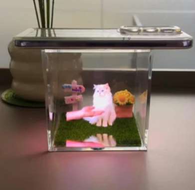 The Paw Hologram Box comes with the little grass field mat displayed from our videos, a mini tree & a decorative item